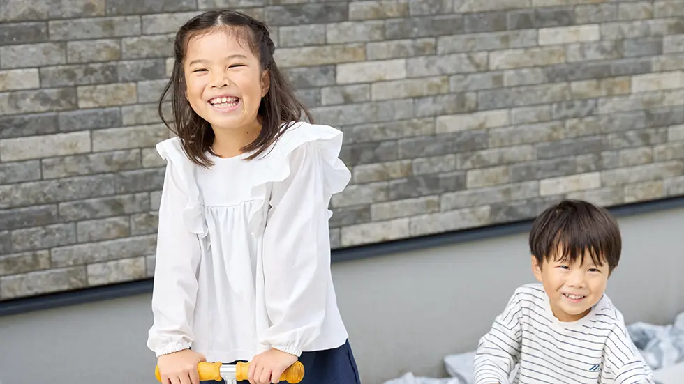 外壁材は、YouTubeなどでも勉強しながら、性能とコストバランスもチェックして、設計士さんにご提案いただいたFu-geを選びました。 デザインやカラーの種類も豊富だったので迷いましたが、クールというよりも自然で温かい雰囲気にしたかったので、そうしたイメージの色柄で2~3種類に絞り、エコルセのバグーMGアッシュに決めました。 エコルセは、周囲の外観でもあまり見かけることがない、石柄でも、木目柄でもないオリジナルな表情のデザインも気に入っています。