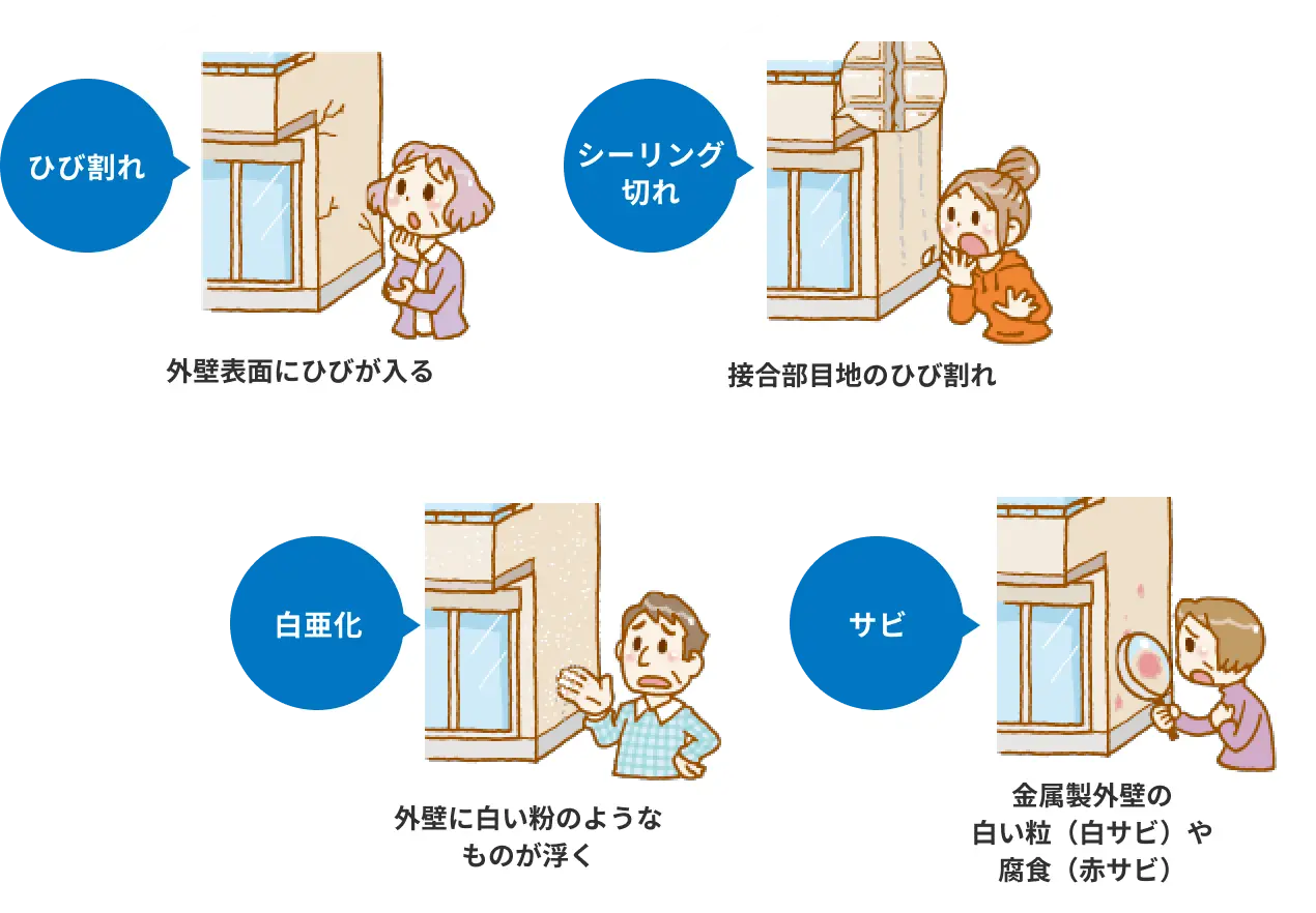 外観にこんな症状が見られたら、まずは点検をお考えください。