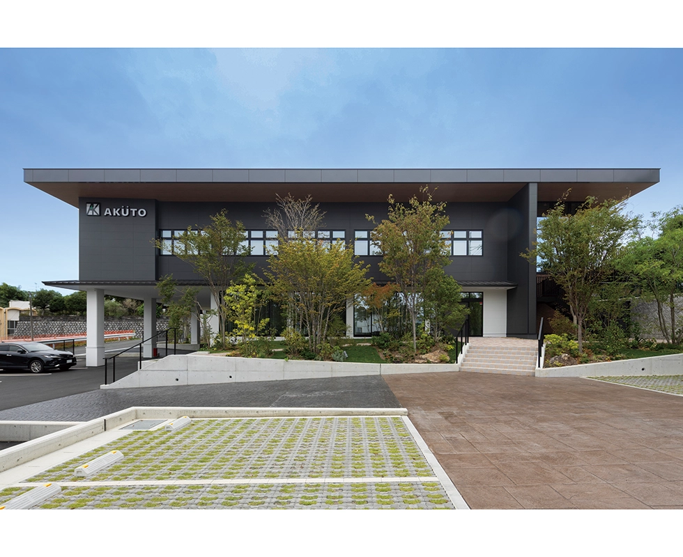 表現性の強い彫刻的なフォルム、しかもそれがブリーズソレイユ※であるという。設計事務所の自社物件がなせる技とはいえ驚いた。その日除けルーバーは庇を支える構造体であり、鋭角に尖ったルーバーの施工を想像しさらに驚く。そしてZEBも取得しつつ、インテリアデザインに至るまでの「ソリッド」な姿勢にもう一度驚いた。
